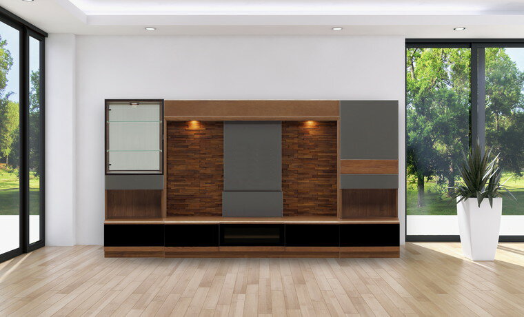 ・下中央AV収納スペースは一枚の扉でゆっくりと開くソフトダウンステー仕様。