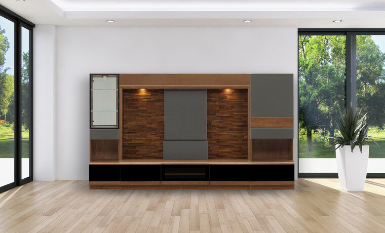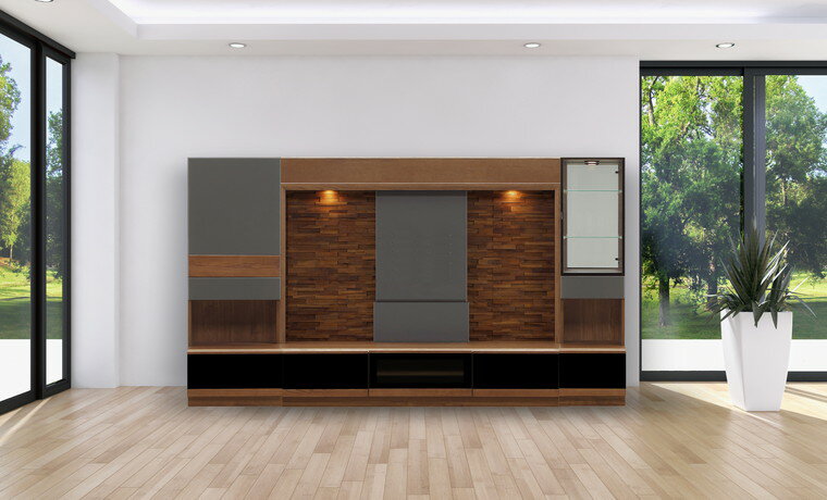 ・下中央AV収納スペースは一枚の扉でゆっくりと開くソフトダウンステー仕様。