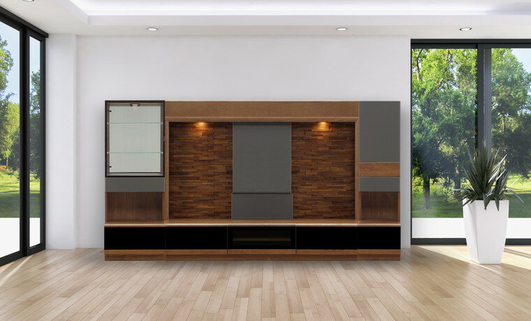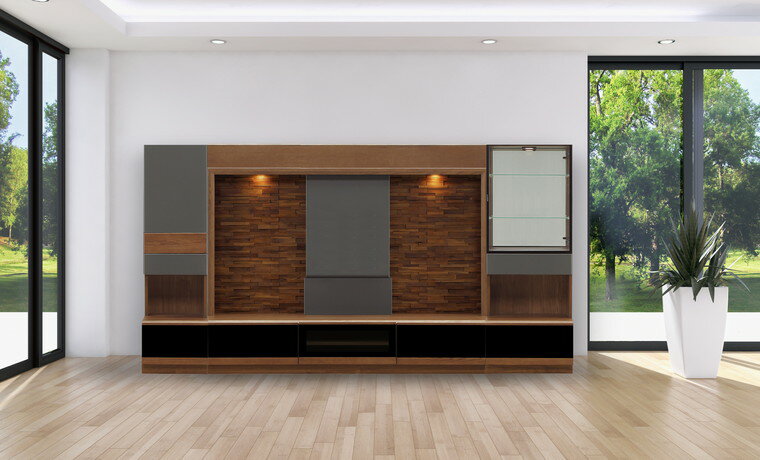 ・下中央AV収納スペースは一枚の扉でゆっくりと開くソフトダウンステー仕様。