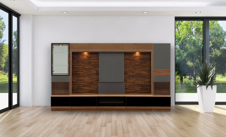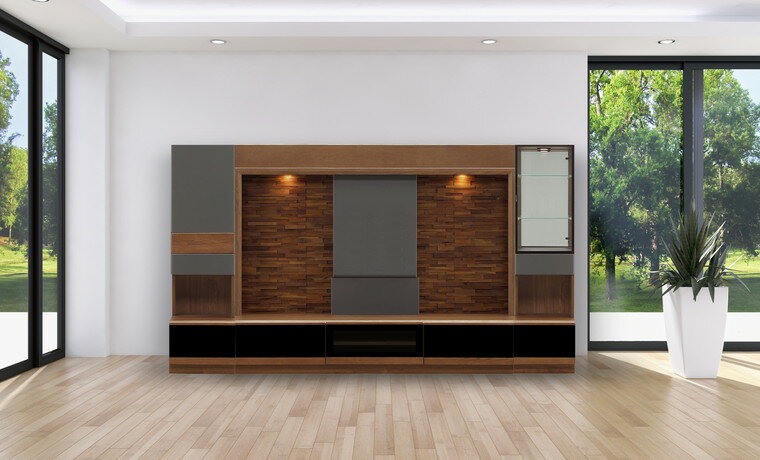 ・下中央AV収納スペースは一枚の扉でゆっくりと開くソフトダウンステー仕様。