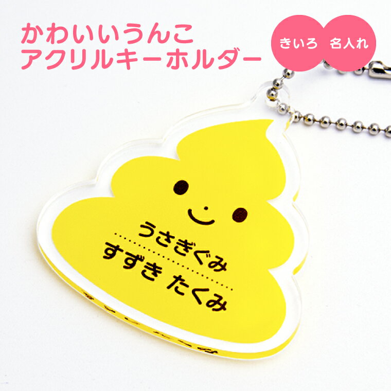 【送料無料キャンペーン中!】【名入れ・文字入れ対応!】かわいい! うんこアクリルキーホルダー (きいろ) 《オリジナル 名札 バッグタグ おもしろ メッセージ 面白 名前入れ うんち おしゃれ たのしい 父の日 母の日 敬老の日 御中元 夏ギフト》