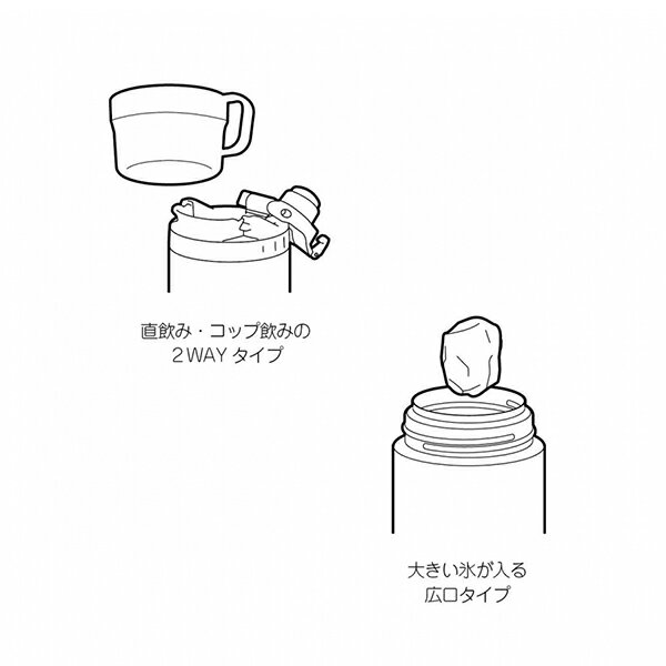 直飲み・コップ飲み、2通りの使い方ができる2WAYタイプ。